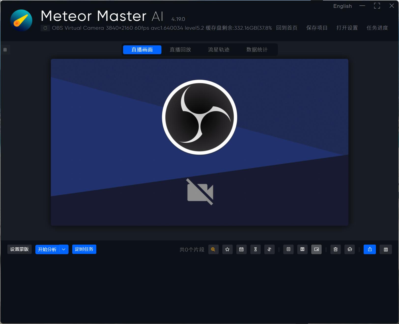 1. 启动软件,点击“分析直播流”或是“分析OBS摄像头”或是“向Meteor Master AI推流”,请确保在点击并打开前他们已经正常运行中并正在推送画面。